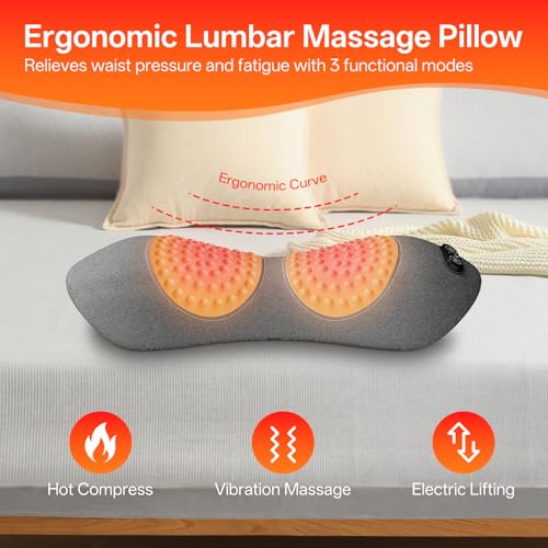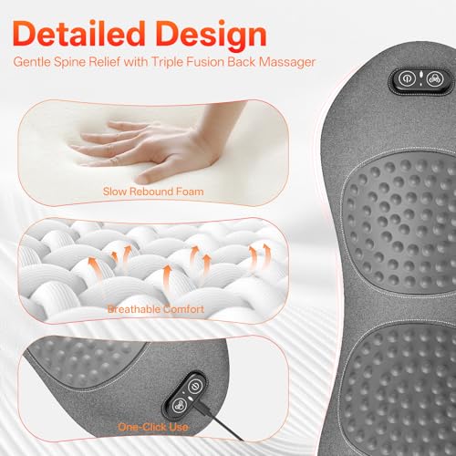 Specification: 3-in-1 Electric Back Massager Pillow with Heat, Vibration and Traction, Triple Fusion Back Massager Bed and Chair Use, Lumbar Support Pillow for Lower Back Comfort and Spine Support (Gray)